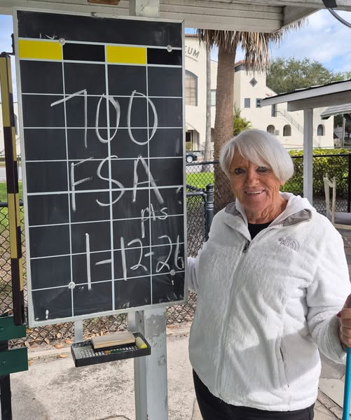 MARCIA WON THE FSA LADIES MASTERS IN 2024 AND WILL NOW ENTER THE FLORIDA SHUFFLEBOARD ASSOCIATION “HALL OF FAME IN 2026. Congratulations Marcia!